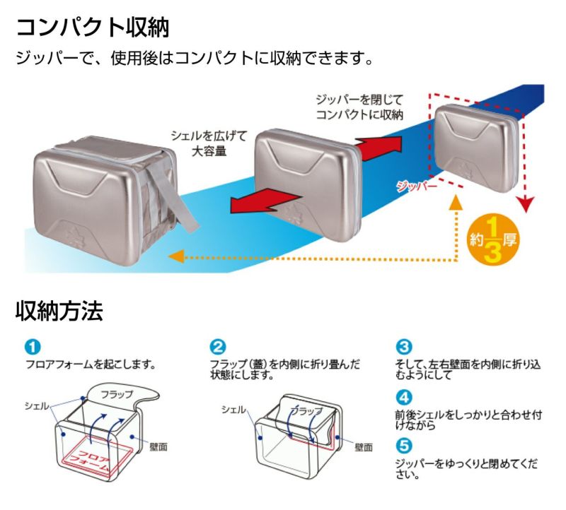収納場所に困るハードクーラーと違い、使わない時は折りたたんでコンパクトに。