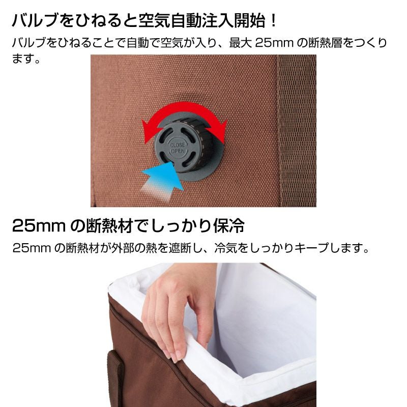・25mmに膨らむ断熱材!保冷力抜群のソフトクーラー。