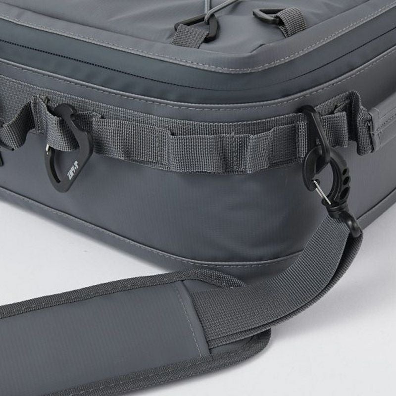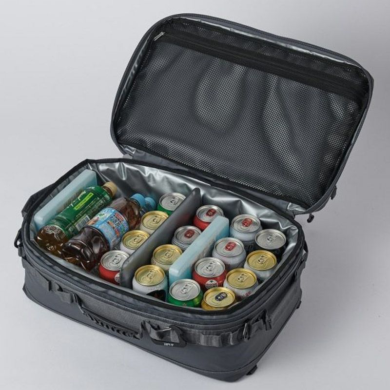 JAGUY NEWモデル 従来モデルより更に保冷力UP!新たに進化したソフトクーラー。 表生地は耐久性,防汚性の高いターポリンを使用。 高い保冷力を誇る4層構造。 断熱材の厚みは20mm厚フォームを使用。内貼はPEVA素材を使用。縫い目のない高周波圧着仕様、ファスナーも止水ファスナーを使用し気密性を高めています。 本体にはカップなどを掛けられるカラビナループやJAGUYロゴ入りカラビナ型ボトルオープナー付き。 収納ギアに合わせて調整可能なデバインダーが2枚付属されています。 ドリンク缶や食材のパックやタッパーなどの収納に適したサイズと容量。フラット型なので350ml缶 1ケースが丸ごと収納可能。 取外し可能なショルダーストラップ付属。 第三者機関の保冷性能検査にて外気温30℃で約44時間、 40℃で約30時間の保冷効果を実証しています。 ※試験体JAGUYソフトクーラーM(20L) 使用条件によって保冷時間は異なります。