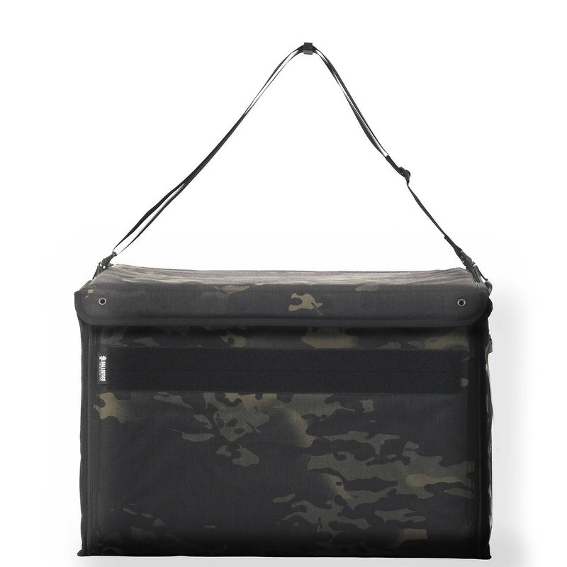 重ねた状態で両サイドのループにショルダーストラップを通し、最下段のDカンにナスカンを取り付けることで、ズレやブレを抑えながら複数ケースをまとめて運搬可能。