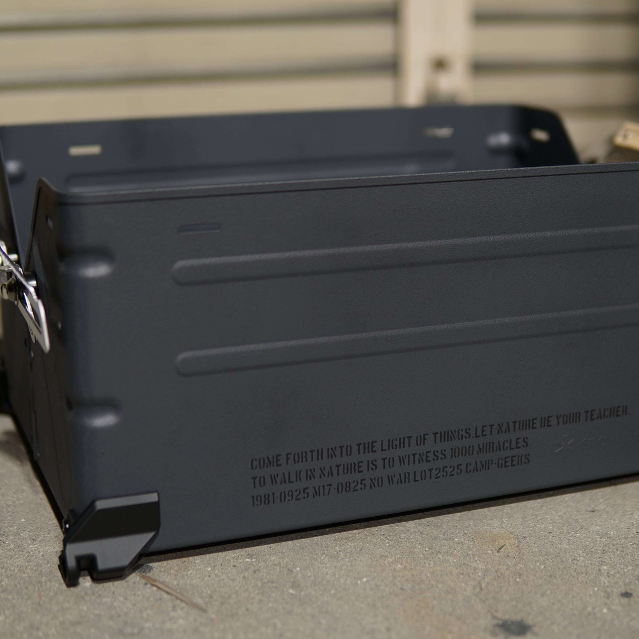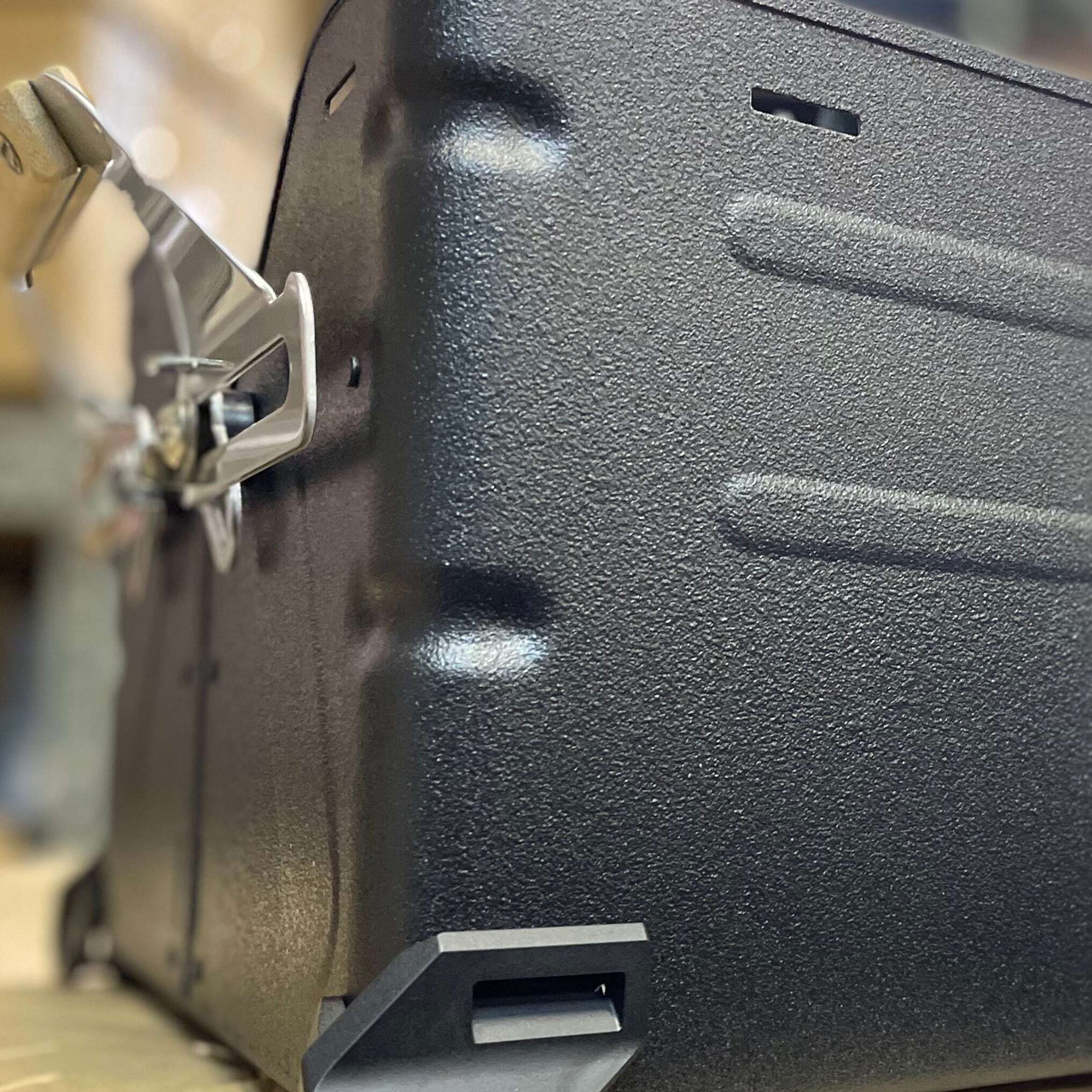 全体をチッピング焼付け塗装後、表側のみスプレーチッピングブラック塗装で仕上げております。