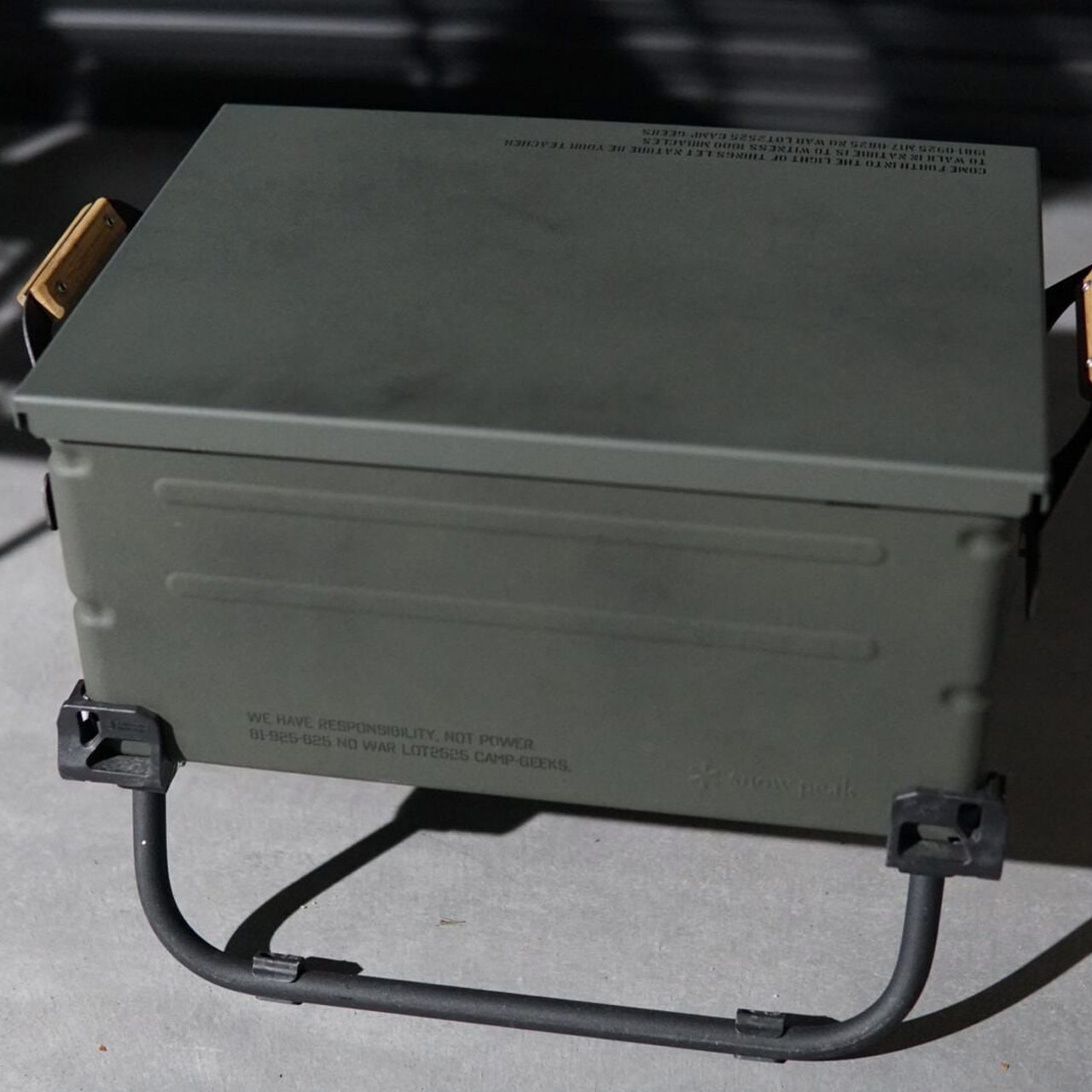 全体を粉体焼付けカーキで塗装後、表側は手塗りで表情がでるように塗装。