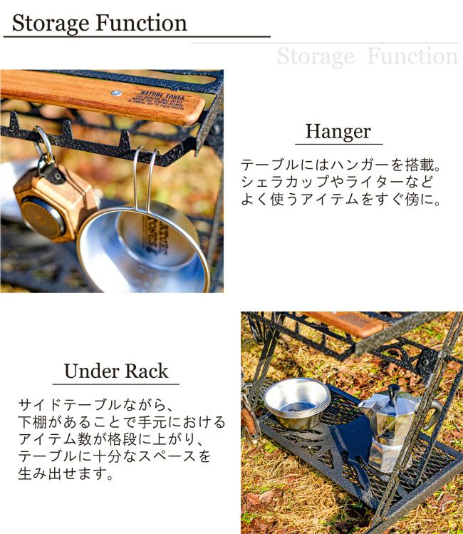 サイドテーブルながら、下棚があることで手元におけるアイテム数が格段に上がり、 テーブルに十分なスペースを生み出せます。