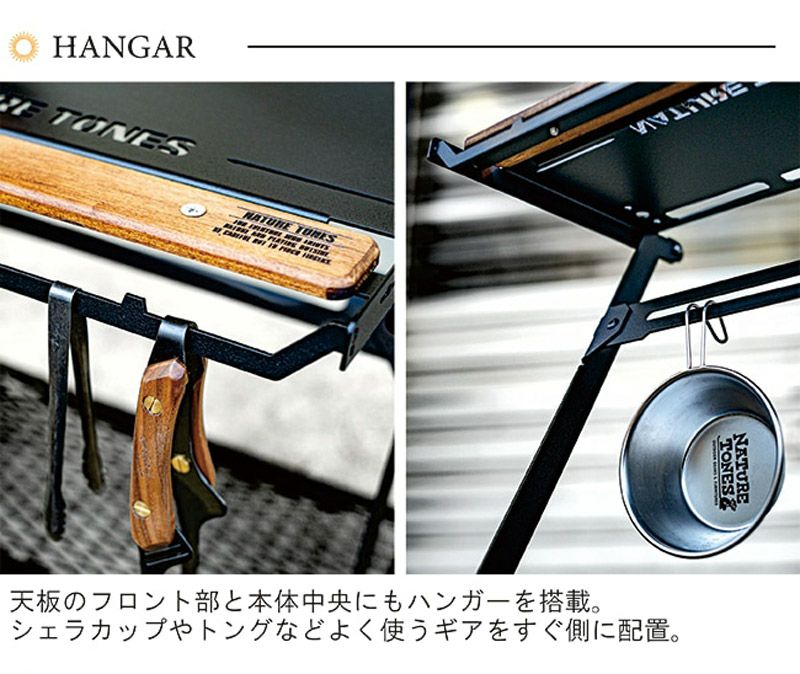 シェラカップやトングなどよく使うギアをすぐ側に配置。