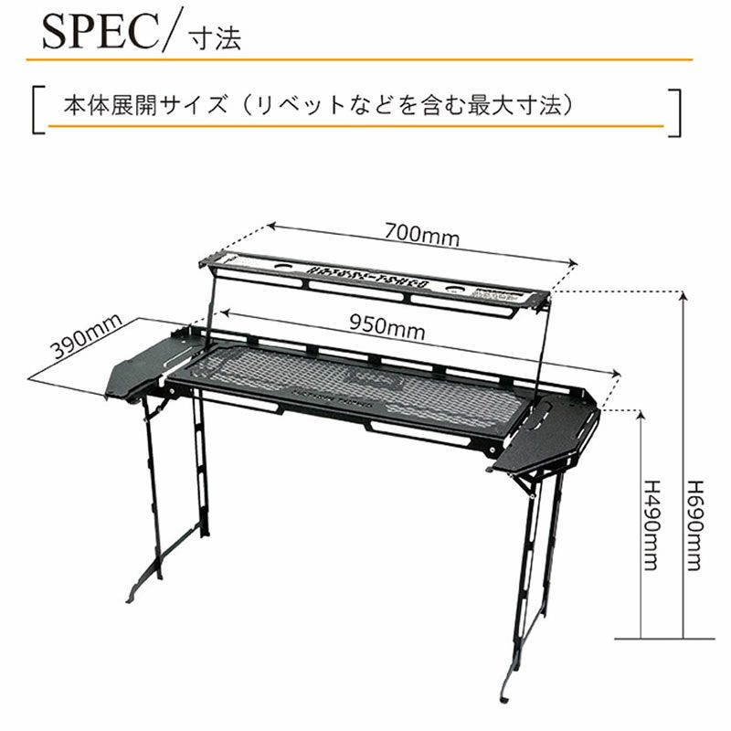 テーブル変形時:390x950x490H(mm)