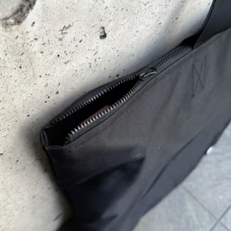 トート型のバッグで上部はジッパーで止める構造になっています。