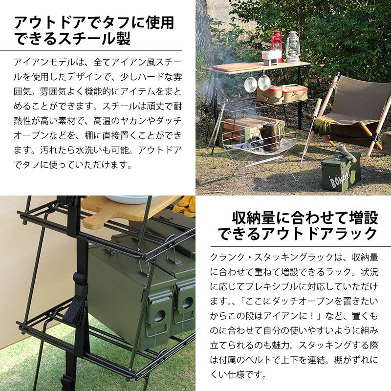 他の画像を見る 収納量に合わせて増設できるアウトドアラックコンパクトに収納できて持ち運びにも便利 Hang Out ハングアウト Crank Stacking Rack Iron クランクスタッキングラック アイアン 販売価格 ¥ 11,550 税込 在庫切れ 詳細を見る お気に入りに登録する