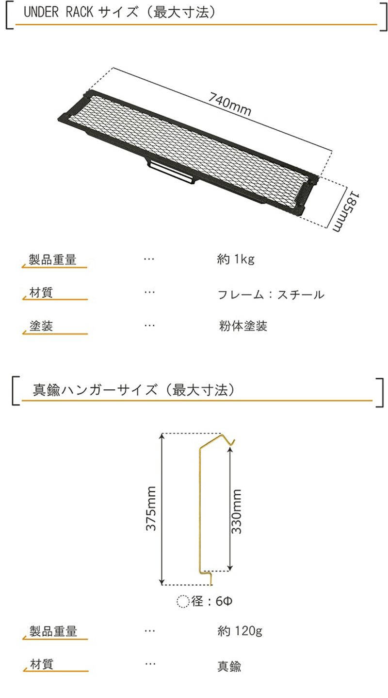他の画像を見る OPアンダーラックを使用することで、ドレイクハンガーの最下部に薪やギアなどを置くことができます。 NATURETONES ネイチャートーンズ THE DRAKE HANGER ドレイクハンガー OPアンダーラック ブラック 販売価格 ¥ 5,500 税込 在庫切れ 詳細を見る お気に入りに登録する