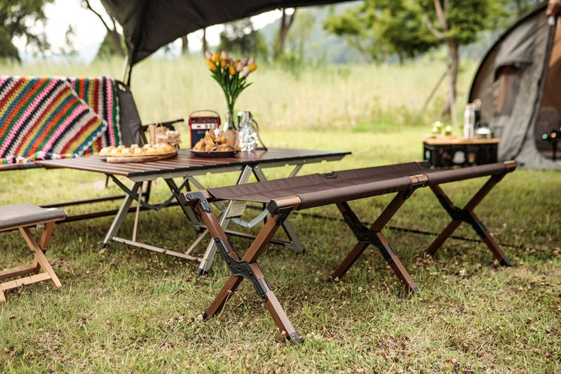 ゆったりとしたシートサイズで大人2人が座っても快適なベンチチェア! 折りたたみタイプのXフレームなので頑丈で手軽な収納が可能! キャンプ、ピクニックはもちろん、室内でも多目的に使用可能なチェア。