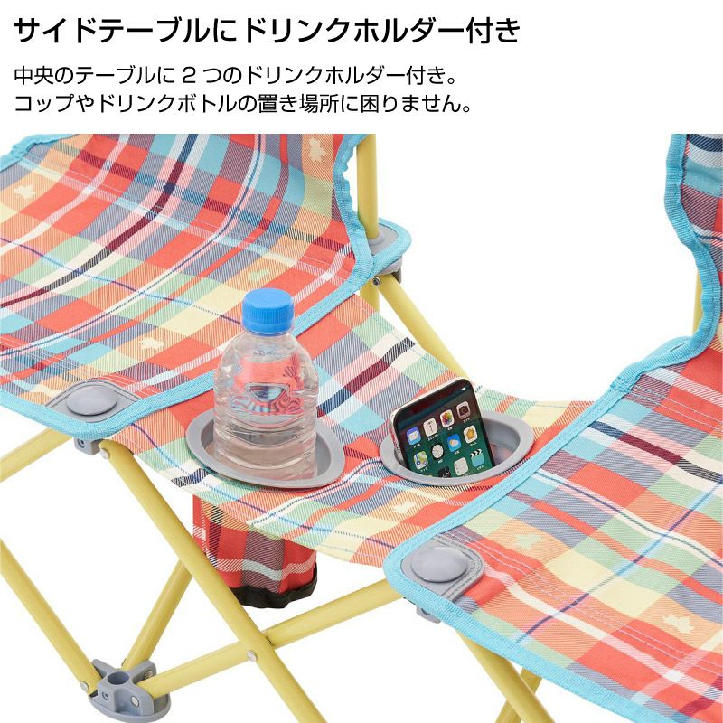 中央のテーブルに2つのドリンクホルダー付き。コップやドリンクボトルの置き場所に困りません。