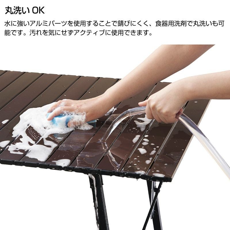 水に強く、サビにくい素材を採用した丸洗い可能なテーブル。