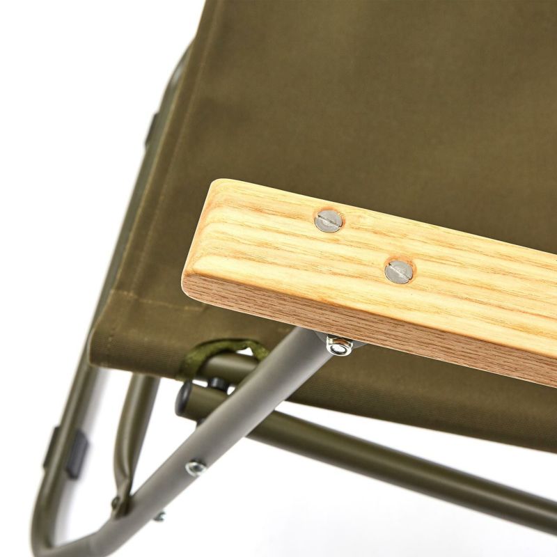仕様 素材 フレーム:アルミ ヒンジ、ボルト類:ステンレス、スチール アームレスト:ホワイトアッシュ 座面:ポリエステル帆布、コーデュラ カラー シルバーフレーム × OD座面 サイズ 約79×56×65cm(展開時) 約85×56×13.5cm(収納時) 重さ 約2.85kg