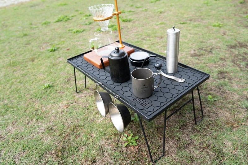 PVC素材なので、滑りにくく防水性に優れています。滑りやすいキャンプギアも扱いやすくなります。