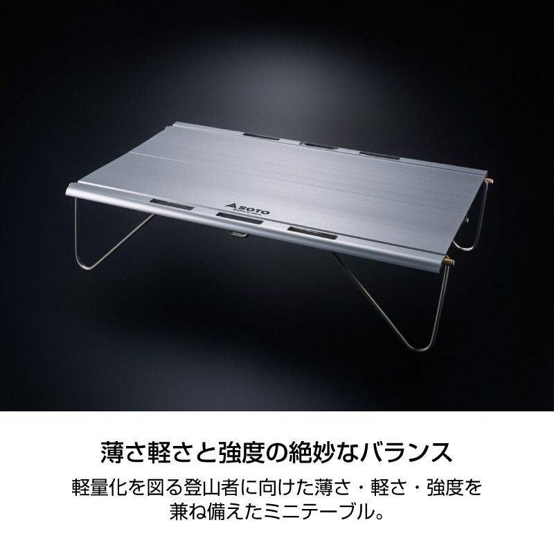 軽量化を図る登山者に向けた薄さ・軽さ・強度を兼ね備えたミニテーブル。