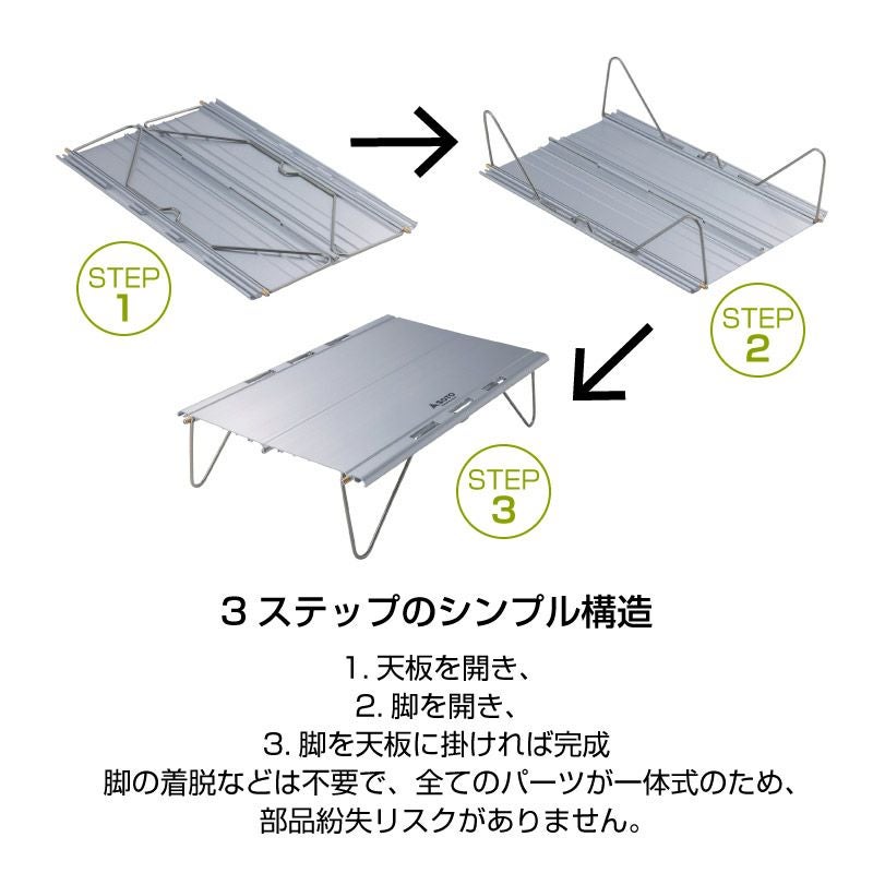 使用時の組み立てがとても簡単な"かゆいところに手が届く"テーブルです。