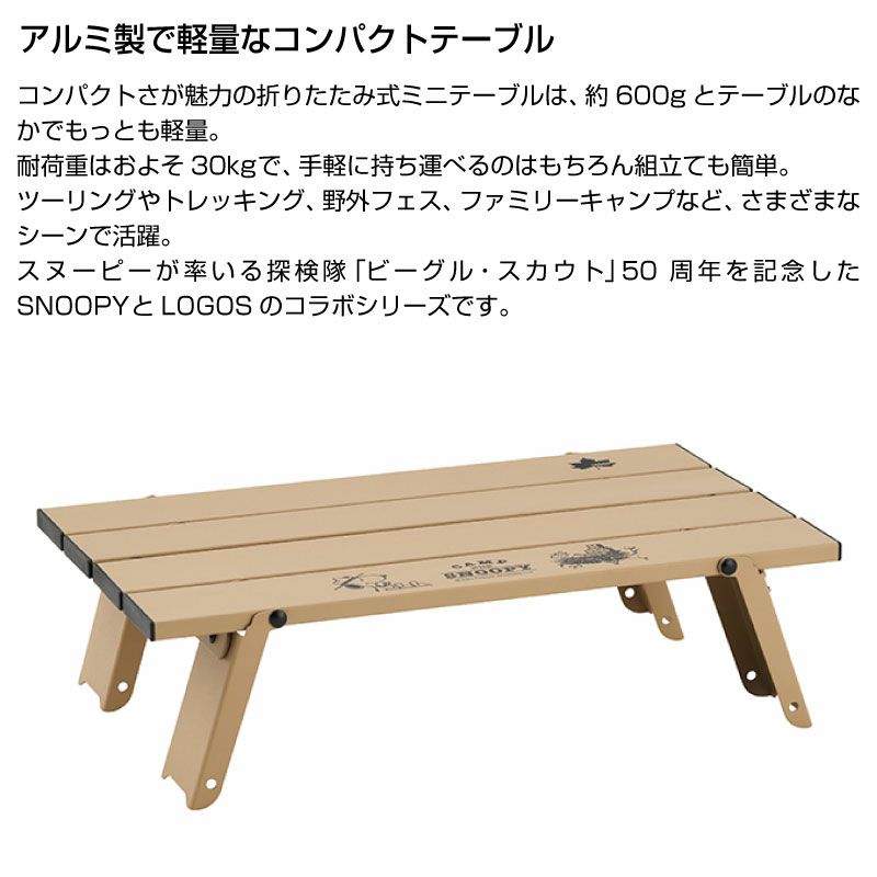 他の画像を見る アルミ製で軽量なコンパクトテーブル折りたたみ式天板だからコンパクト収納 LOGOS ロゴス SNOOPY Beagle Scouts 50years ロール膳テーブル 販売価格 ¥ 4,950 税込 カートに入れる お気に入りに登録する
