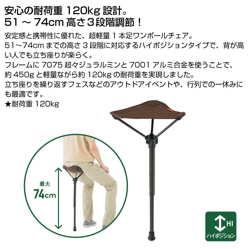 他の画像を見る 安定感と携帯性に優れた、超軽量1本足ワンポールチェア。 LOGOS ロゴス エアライト 1ポールチェア・ハイポジション 販売価格 ¥ 9,790 税込 在庫切れ 詳細を見る お気に入りに登録する