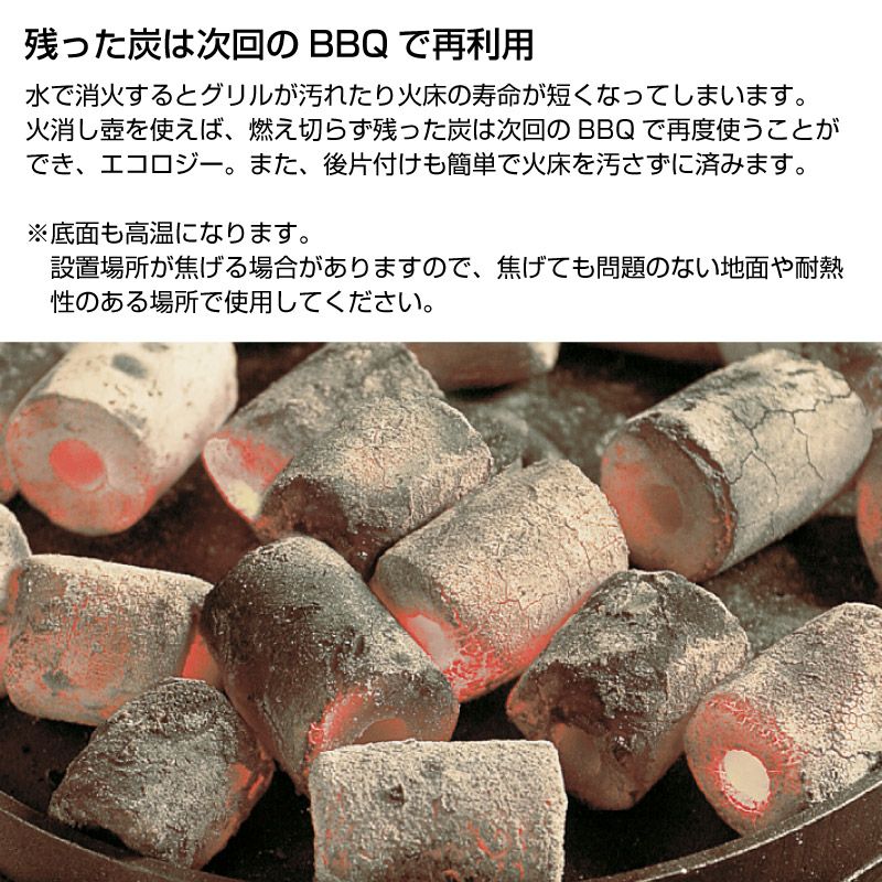 火がついた炭をそのまま容器に入れてフタを閉めれば自然と消化するので、再利用することができる。