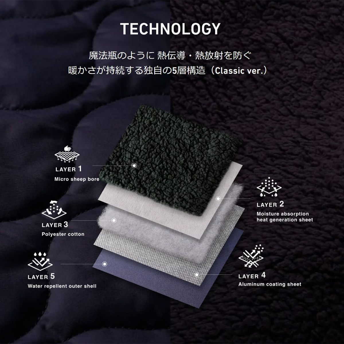 他の画像を見る 魔法瓶のように熱伝導・熱放射を防ぐ、暖かさの秘密は独自の新6層構造のブランケット。 LUGH 魔法瓶ブランケット グラフェン使用 (6層) スモール S ミッドナイトブラック インディゴ オリーブドラブ ウォルナット 販売価格 ¥ 8,250 税込 カートに入れる お気に入りに登録する