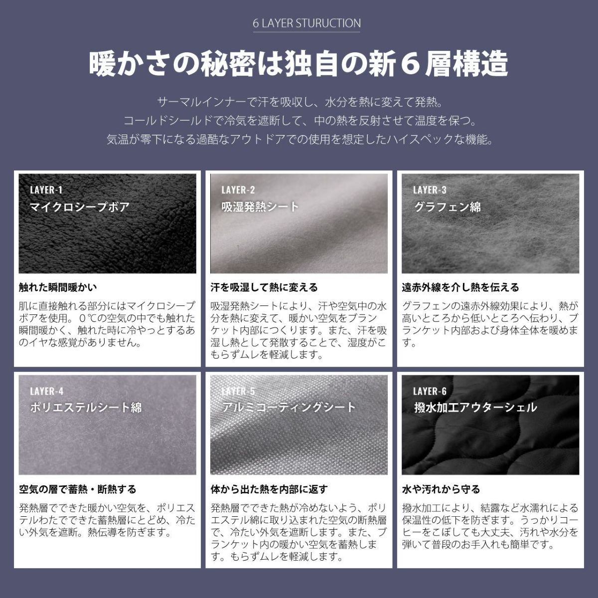 他の画像を見る 魔法瓶のように熱伝導・熱放射を防ぐ、暖かさの秘密は独自の新6層構造のブランケット。 LUGH 魔法瓶ブランケット グラフェン使用 (6層) ラージ L ミッドナイトブラック インディゴ オリーブドラブ ウォルナット 販売価格 ¥ 16,500 税込 カートに入れる お気に入りに登録する