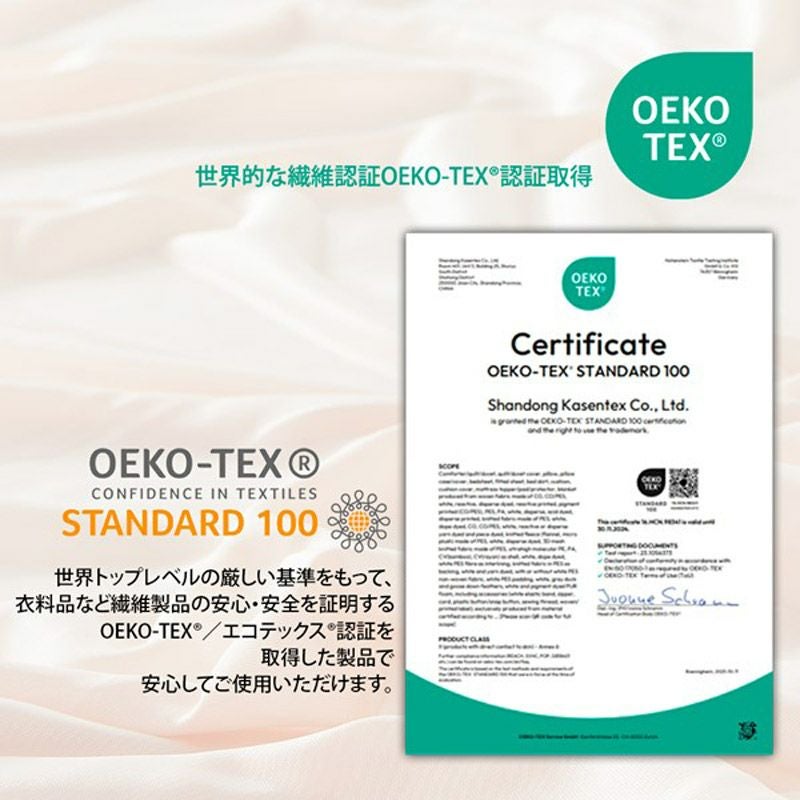 OEKO-TEX R/エコテックス R認証を取得していますので、安心してご使用いただけます。