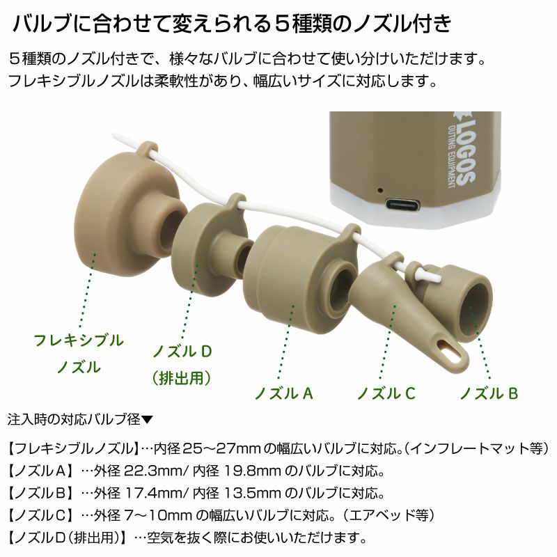 空気注入だけでなく排気にも使え、テント内を掃除する際にも便利です。