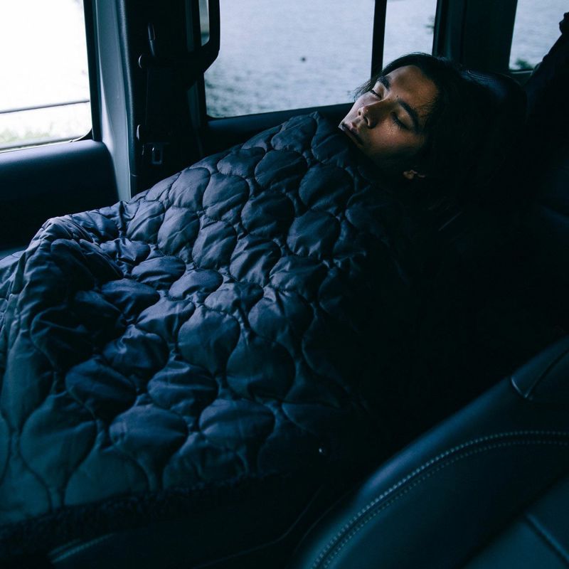 リビング使いからアウトドアシーンまで、幅広い使い方ができるブランケット。