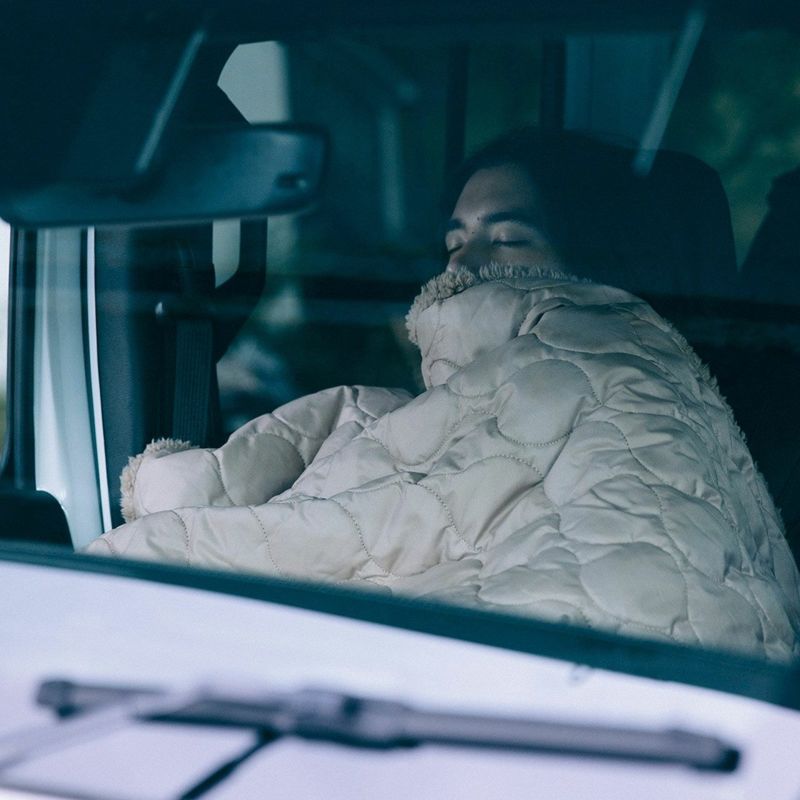 突然の大雪による予期せぬ立ち往生。エンジンを切った車内での体温維持が大きな課題となります。