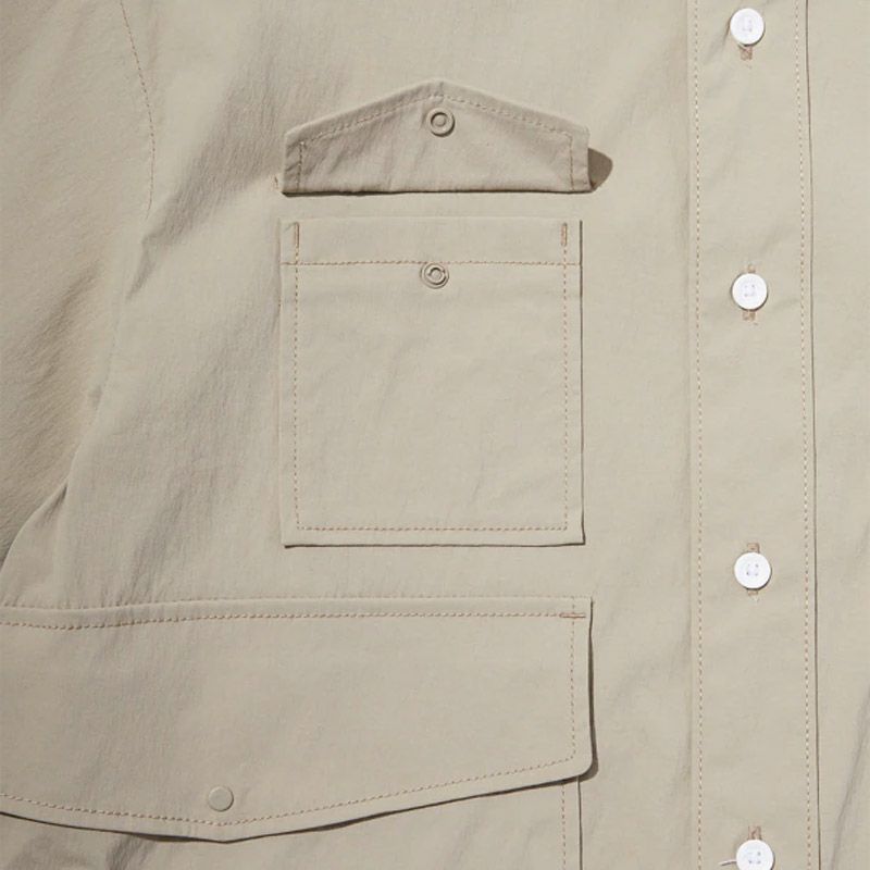 キャンプやアクティブシーンに有効な収納ディテールを多数備えた、高機能なボタンシャツ。