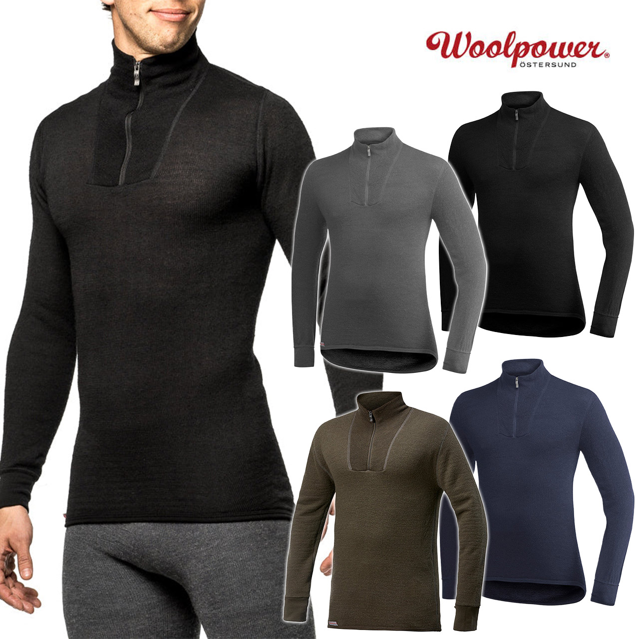 Woolpower ウールパワー ジップタートルネック 200 ブラック グレー ネイビー カーキ Sサイズ Mサイズ アウトドアウェア トップス