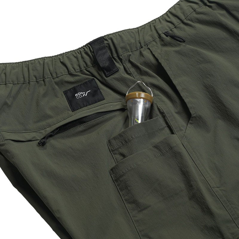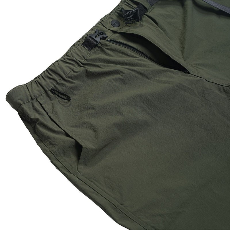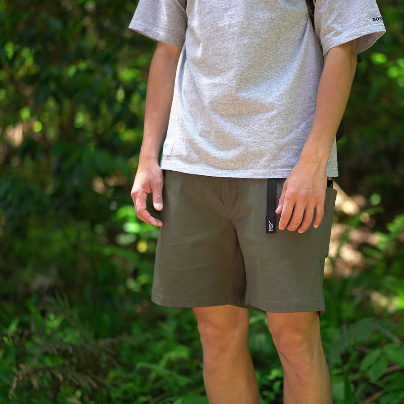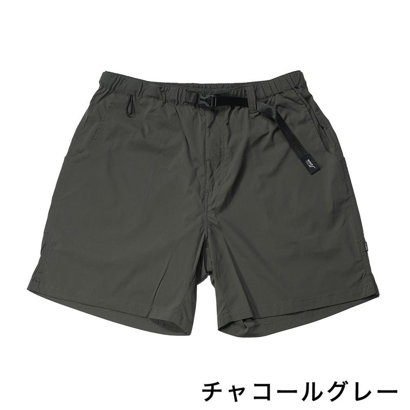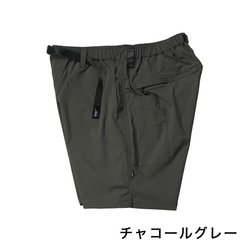 バックル付きのウェビングベルト(ウエスト)&ジッパーフライ採用。キャンプやハイキングはもちろん日常使いを想定したアウトドアショーツ。