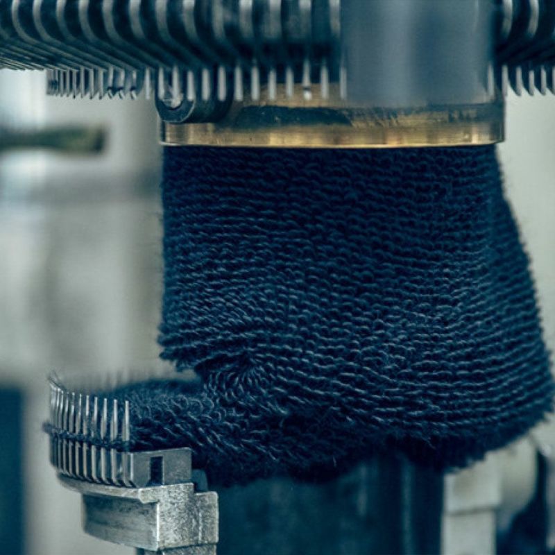 表面が平編み、裏面がタオル地のようになったテリー編みで構成されており、