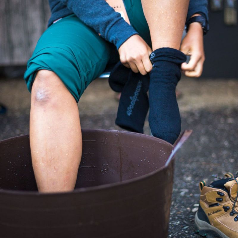 数十秒の間氷水に足を浸し、拭かずに直接ソックスを履き、