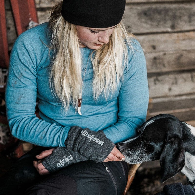手の甲部分にはワンポイントでウールパワーのロゴが入っています。