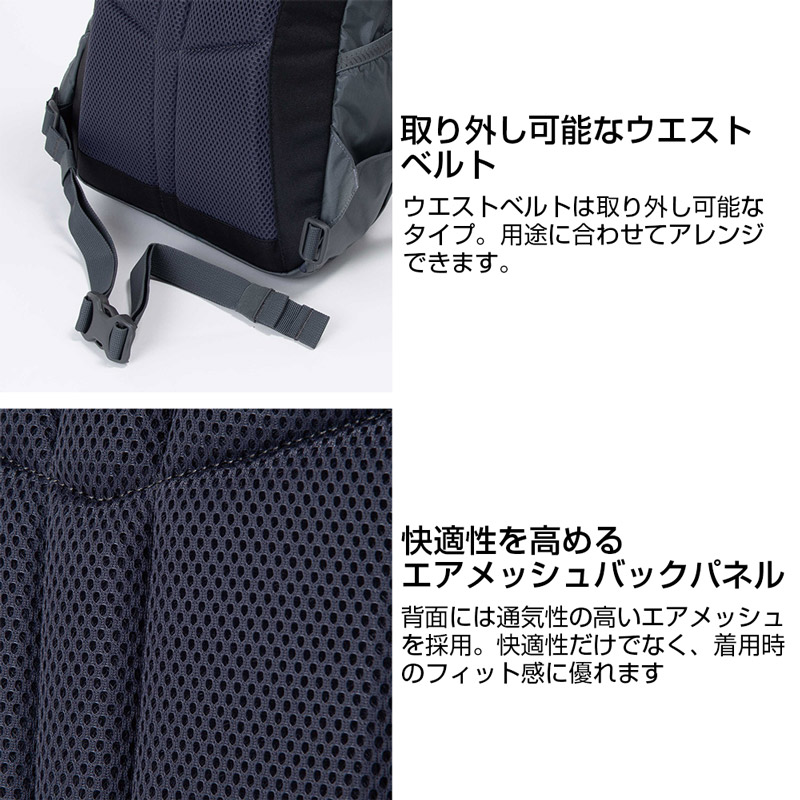 安定性の良いフォルム、通気性の高いメッシュを使用したバックパネル、