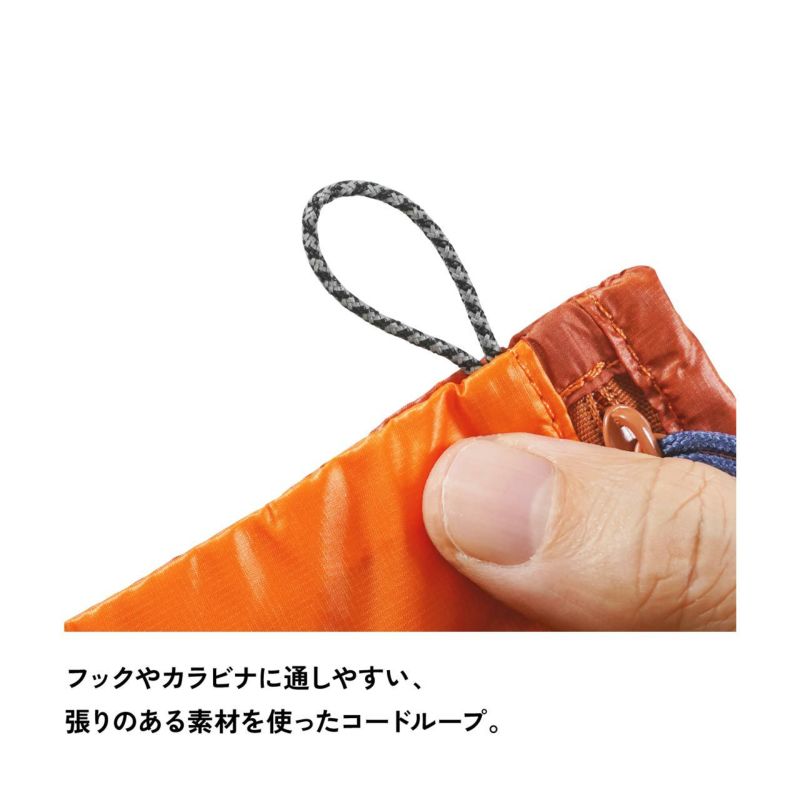●フックやカラビナに通しやすい、張りのある素材を使ったコードループ。グローブを付けたままでも使いやすい素材を選びました。
