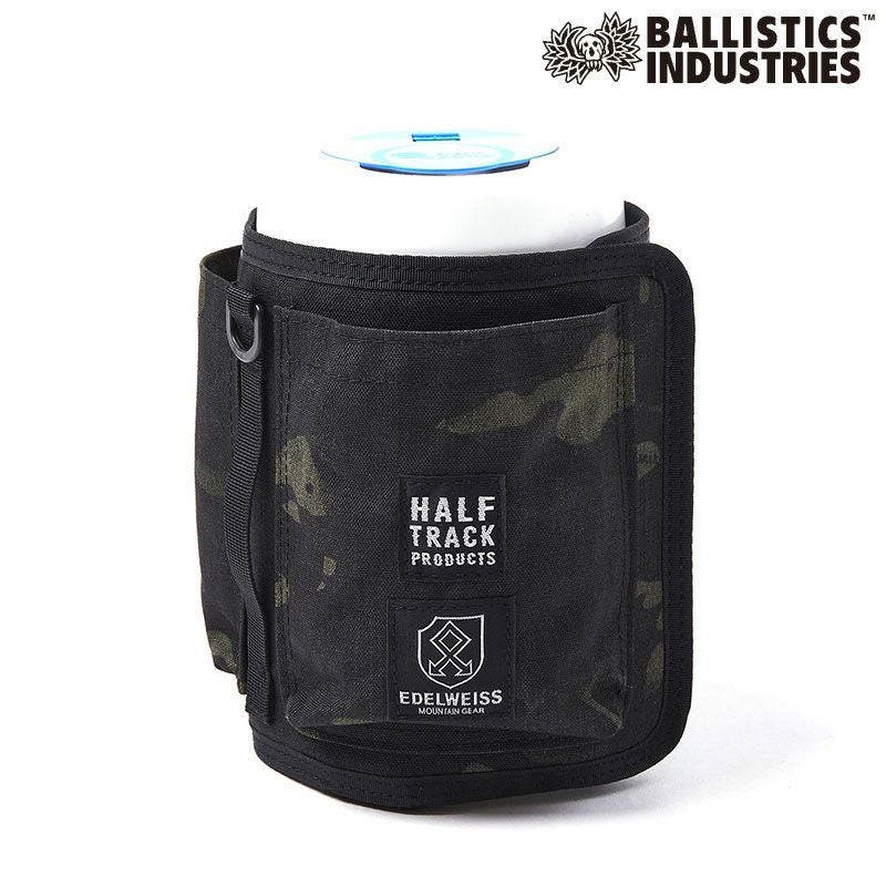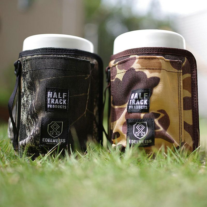 ハーフトラックプロダクツとコラボしたウエットティッシュのケース (カバー)になります。 本体外周と底面のベルクロによりサイズ調節ができるので市販品サイズにも合います。 周囲にポケットが3つありますので小物の収納に便利です。 又、ハンドル上部2箇所のDカンにパラコードや細引き等を通して結んでいただく事により肩掛けできる他タープポールやクルマのヘッドレスト等お好みの場所にぶら下げることが 可能です。(ヒモは付属しません。)