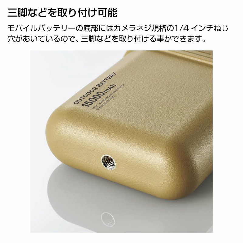 他の画像を見る アウトドアシーンに最適な防水・防塵・耐衝撃のモバイルバッテリー。別売りのパーツをを取り付けることで、LEDランタンなど様々なアウトドアギアとして使うことが可能! NESTOUT ネストアウト モバイルバッテリー15000mAH ブラック サンドベージュ 販売価格 ¥ 8,980 税込 在庫切れ カートに入れる お気に入りに登録する