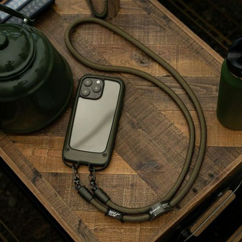 ロープ先端はナスカン仕様なので、カラビナループを搭載したROOT CO.のiPhoneケースであれば直接装着可能。