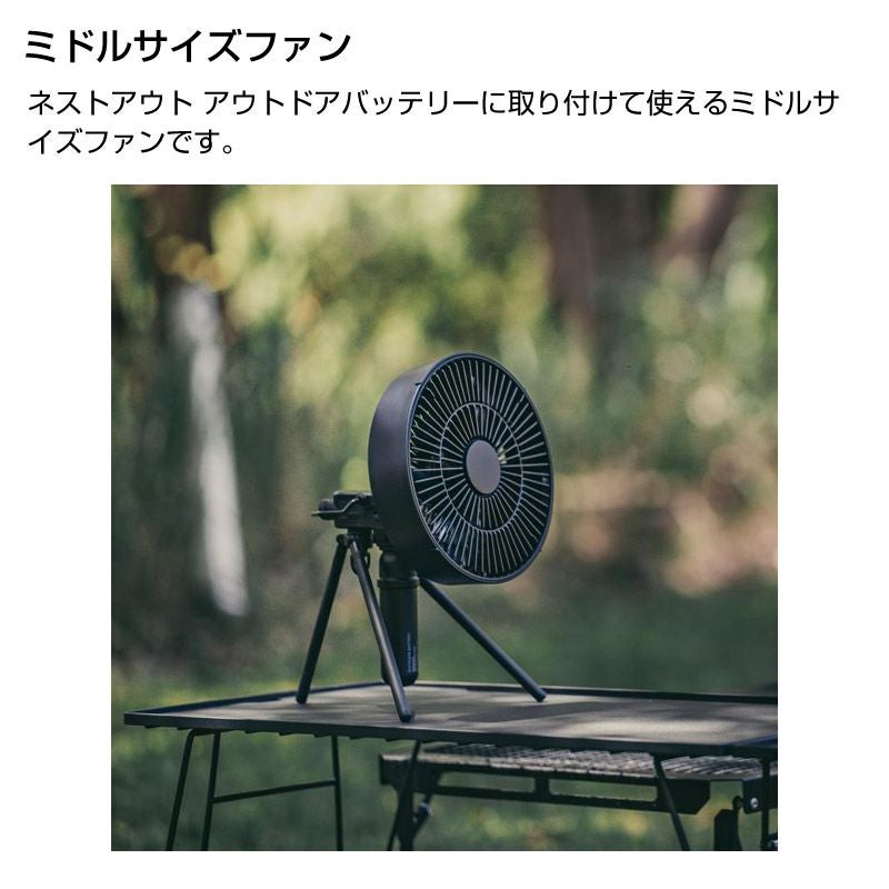 季節を問わず使える、“NESTOUT(ネストアウト)”シリーズのミドルサイズファンです。
