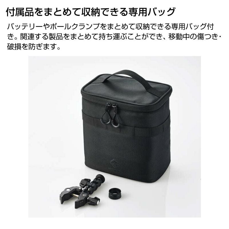 付属品:三脚、三脚固定ねじ、ネストアウト アウトドアバッテリー接続パーツ、ポールクランプ、バッグ、取扱説明書