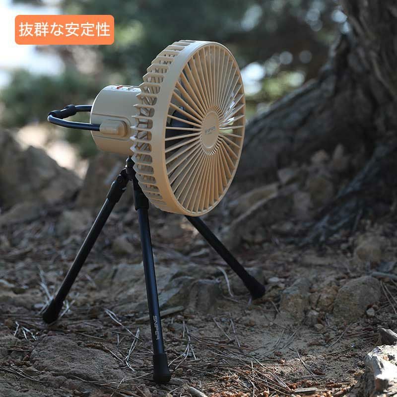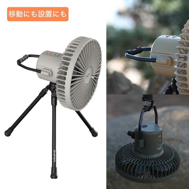 さらに三脚を外して後部のハンドルを使ってぶら下げれば、シーリングファンのように空気の循環としてオールシーズン使用可能です。