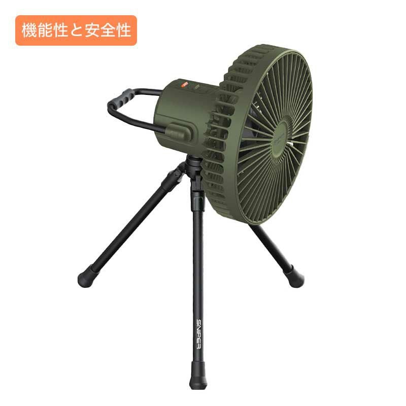 スナイパーファンプロ1は、屋内ではもちろんアウトドアにも使える、パワフルなサーキュレーター、兼扇風機です。