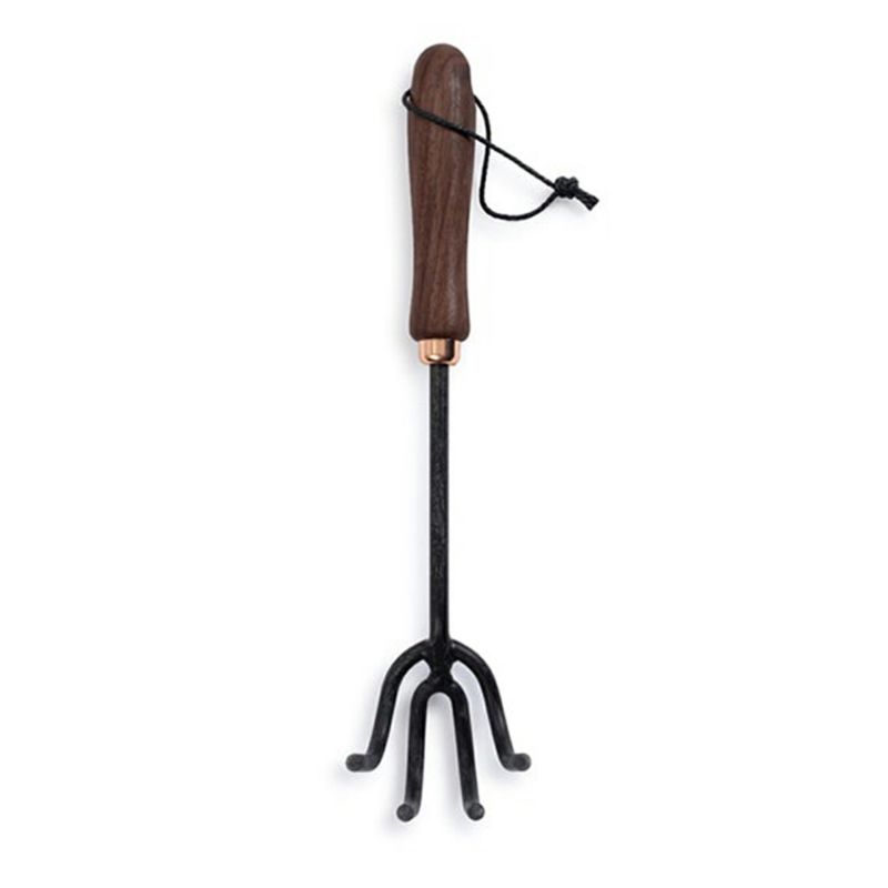 ウォールナットのハンドルとステンレススチールでできた、デザイン性・耐久性の高い熊手です。